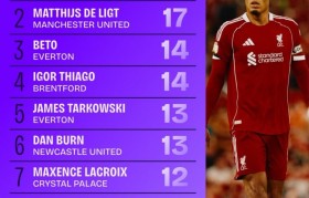 亚博体育-新赛季英超争顶榜:范迪克&德里赫特17次居首,贝托&丹-伯恩在列