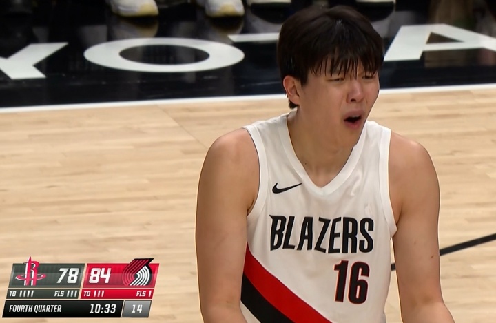 对阵火箭时与亚当斯缠斗后裁判吹了杨瀚森推人,小杨向裁判表示不解