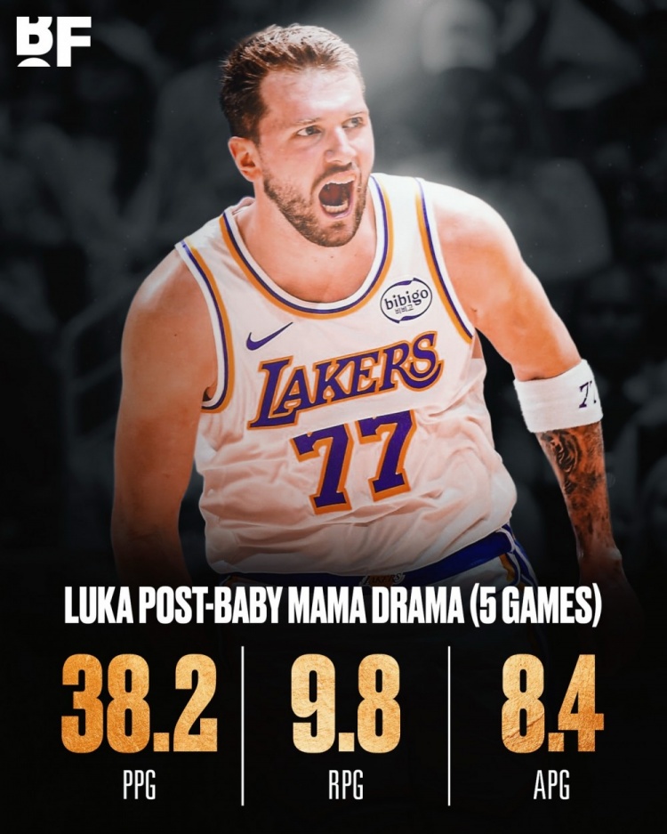 据统计,自从与未婚妻传出分手传闻以来5场比赛(目前已经官宣分手),东契奇场均可以轰下38.2分9.8篮板8.4助攻。